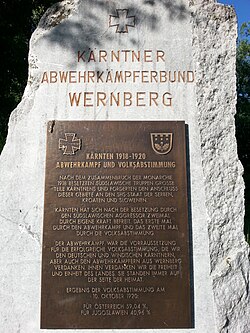 | Gedenkstein zur Erinnerung an den Kärntner Abwehrkampf, Wernberg, Kärnten, Österreich | Eigenes Werk | MoserB | Datei:Gedenkstein Abwehrkampf Wernberg.jpg | |