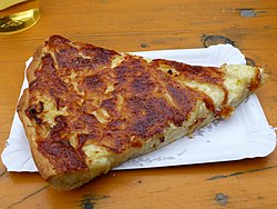 | Traditional Austrian/Swiss cheese dish | Eigenes Werk | SlartibErtfass der bertige | Datei:Käsefladen.jpg | |