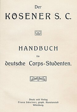 | Titelblatt des Handbuchs für deutsche Corpsstudenten | Archiv Corps Masovia | Franz Scheiner, Würzburg | Datei:Handbuch Kösener Corpsstudenten (1912).jpg | |