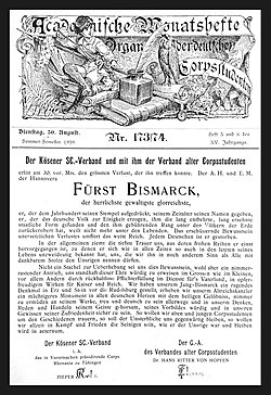 - ↑ W. Fabricius: Geschichte und Chronik des Kösener SC-Verbandes. Nach den Akten von Dr. W. Fabricius. G. Elwert’sche Universitätsbuchhandlung, Marburg 1907, S. 4 f.