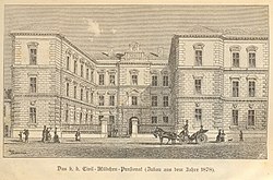 | Das k.k. Civil-Mädchen-Pensionat in Wien VIII, Josefstädterstraße 39 (Palais Strozzi)(Zubau aus dem Jahre 1878) | Franz Branky: Das k. k. Civil-Mädchen-Pensionat in Wien . Eine Denkschrift zur Säcularfeier der im Jahre 1786 vom Kaiser Josef II. zur Heranbildung von Lehrerinnen und Erzieherinnen gegründeten Bildungsstätte , Selbstverlag des k. k. Civil-Mädchen-Pensionates, Wien 1886 onb.ac.at | Autor/-in unbekannt Unknown author | Datei:Civil-Mädchen-Pensionat Wien front.jpg | |