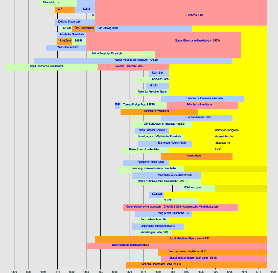 Da sich fast in ganz Europa das Staatsbahnsystem durchsetzte, wurden seit den 1880er Jahren zahlreiche private österreichische Eisenbahnunternehmen systematisch und planvoll verstaatlicht, darunter so große Unternehmen wie 1906 die Kaiser-Ferdinands-Nordbahn oder 1909 die Staatseisenbahn-Gesellschaft (siehe Verkehrspolitik).
