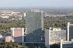 | Blick von der Aussichtsplattform des Donauturms auf den IZD Tower. | Eigenes Werk | Tuelp | Datei:IZD Tower von Donauturm.JPG | |