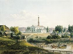 | Das Maschinenhaus der Kaiser-Ferdinands-Wasserleitung. Aquarell und Deckfarbe, 25,5 x 34 cm. Signiert | Hrsg. Walter Öhlinger: Mit Stock und Hut. Aquarelle und Zeichnungen des Wiener Biedermeier (Museen der Stadt Wien, Katalog zur Ausstellung in der Hermesvilla, 8. Mai bis 14. September 2003) | Franz Wolf | Datei:Wolf-Kaiser-Ferdinands-Wasserleitung.jpg | |