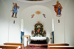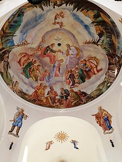 In der zentralen Kuppel befindet sich ein Fresko, welches die Krönung Mariens abbildet. Maria wird dabei von einem Engelkreis umgeben. Unter ihr befinden sich die vier Evangelisten. An den vier Ecken des Zentralbaus sind zudem die Fresken von vier Heiligen zu sehen: Vorne links – der heilige Josef, vorne rechts – die heilige Anna, hinten links – die heilige Barbara, hinten rechts – der heilige Franz von Sales.