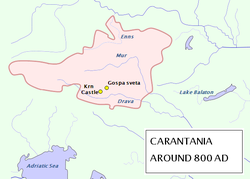 | Karantanien (Karantanija) um 800 n. Chr. | Carantania_800_AD.PNG Waterways_of_SE_Central_Europe.svg | Carantania_800_AD.PNG : * Waterways_of_SE_Central_Europe.svg : Kmiki87 derivative work: Bostjan46 ( talk ) Waterways_of_SE_Central_Europe.svg : Kmiki87 derivative work: Bostjan46 ( talk ) | Datei:Carantania 800 AD-en.PNG | |