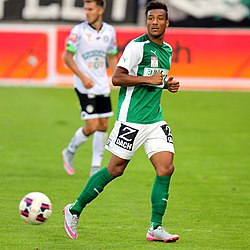 | Match of the Austrian Football Bundesliga – SV Mattersburg (green shirts) vs. SK Sturm Graz (white shirts) on 2015-09-13 in Pappelstadion , Mattersburg – The photo shows Karim Onisiwo | Eigenes Werk | Steindy ( Diskussion ) 20:53, 21 September 2015 (UTC) Permission= Kameraposition 47° 44′ 21,66″ N, 16° 24′ 23,13″ O Dieses und weitere Bilder auf OpenStreetMap 47.739350; 16.406425 Die Herstellung oder Freigabe dieser Datei wurde durch Spenden an Wikimedia Österreich unterstützt. Weitere Dateien, die durch Unterstützung von Wikimedia Österreich hier veröffentlicht wurden, finden sich in der Kategorie Supported by Wikimedia Österreich . | Datei:SV Mattersburg vs. SK Sturm Graz 2015-09-13 (152).jpg |