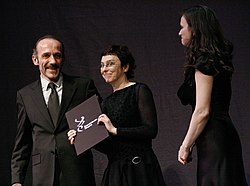 | Karina Ressler - Gewinnerin der Kategorie Bester Schnitt - mit Barbara Albert und Karl Markovics beim Österreichischen Filmpreis 2011 im Wiener Odeon-Theater . | Eigenes Werk | Manfred Werner - Tsui | Datei:Österreichischer Filmpreis 2011 (48) Karina Ressler.jpg | |