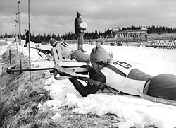 | Es folgt die historische Originalbeschreibung , die das Bundesarchiv aus dokumentarischen Gründen übernommen hat. Diese kann allerdings fehlerhaft, tendenziös, überholt oder politisch extrem sein. Klaus Siebert, Karl-Heinz Menz ADN-ZB Häßler 6.3.76-str- Bez. Dresden: DDR-Biathlon-Meisterschaften- Am Schießstand während des 20-km-Einzelrennen der Senioren absolvierten die Aktivisten das Liegend-Schießen. Vorn rechts Klaus Siebert (Dynamo Zinnwald), dahinter Karl-Heinz Menz (ASK Oberhof). | Dieses Bild wurde im Rahmen einer Kooperation zwischen dem deutschen Bundesarchiv und Wikimedia Deutschland aus dem deutschen Bundesarchiv für Wikimedia Commons zur Verfügung gestellt. Das deutsche Bundesarchiv gewährleistet eine authentische Bildüberlieferung nur durch die Originale (Negative und/oder Positive), bzw. die Digitalisate der Originale im Rahmen des Digitalen Bildarchivs . | Ulrich Häßler | Datei:Bundesarchiv Bild 183-R0306-0009, Klaus Siebert, Karl-Heinz Menz.jpg | |