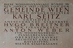 | Gedenktafel "Kündigungsgrund Nichtarier" am Karl-Marx-Hof in Wien | Selbst fotografiert | Matrixplay Hilfe gesucht! | Datei:Gedenktafel Karl-Marx-Hof.JPG | |