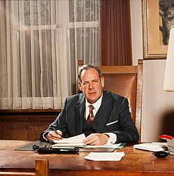 | Karl Bohle war von 1965 bis 1983 Bürgermeister der österreichischen Stadt Dornbirn . Hier auf einem Bild in seinem Amtszimmer im Dornbirner Rathaus aus dem Jahr 1975. | https://pid.volare.vorarlberg.at/o:47279 | Vorarlberger Landesbibliothek, Sammlung Helmut Klapper | Datei:Karl Bohle 1975.jpg |