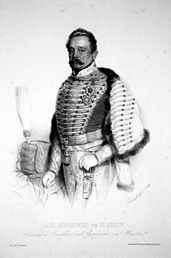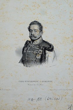 | Karl Gorzkowski von Gorzkow (1778-1858), österreichischer General der Kavallerie, Ritter des militäriwchewn Maria-Theresien-Ordens. Lithographie von Adolf Dauthage, ca.1850 | Foto einer Originallithographie aus der eigenen Sammlung | Adolf Dauthage (1825-1883) | Datei:Karl Gorzkowski von Gorzkow Litho.jpg | |