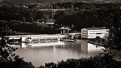 | hydroelectric power station Ybbs Persenbeug, view in flow direction (SE) | Eigenes Werk | Jürgen Schindler | Datei:Wasserkraftwerk Ybbs - Persenbeug, Südkraftwerk in Fließrichtung.jpg | |