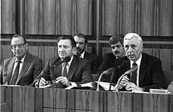 | Es folgt die historische Originalbeschreibung , die das Bundesarchiv aus dokumentarischen Gründen übernommen hat. Diese kann allerdings fehlerhaft, tendenziös, überholt oder politisch extrem sein. 22.4.1983 Pressekonferenz nach der 115. Konferenz der Innenminister und -Senatoren. (Themen: Volkszählung, Teilzeitarbeit u.a.) | Dieses Bild wurde im Rahmen einer Kooperation zwischen dem deutschen Bundesarchiv und Wikimedia Deutschland aus dem deutschen Bundesarchiv für Wikimedia Commons zur Verfügung gestellt. Das deutsche Bundesarchiv gewährleistet eine authentische Bildüberlieferung nur durch die Originale (Negative und/oder Positive), bzw. die Digitalisate der Originale im Rahmen des Digitalen Bildarchivs . | Hoffmann, Harald | Datei:Bundesarchiv B 145 Bild-F065458-0012, Bonn, Pressekonferenz Tagung Innenminister.jpg | |