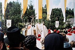 | Veringenstadt 1963. Primiz von Karl Lehmann später Kardinal in Mainz und Vorsitzender der deutschen Bischofskonferenz. Die Konzelebranten waren Pfarrer Friedolin Abberger und Pfarrer Friedolin Fink. | Eigenes Werk | Th. Fink Veringen | Datei:1963 Primitz Karl Lehmann später Kardinal in Mainz + Vorsitzender der deutschen Bischofskonferenz.JPG | |