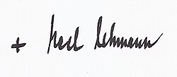 | Karl Lehmann. Signatur seiner Karte an mich vom Dezember 1994 | Eigenes Werk | Karl Lehmann | Datei:Karl Lehmann. Signatur 1995.jpg | |