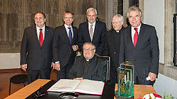 Hans Peter Wollseifer, Laudator Andreas Ehlert, Minister Garrelt Duin, Weihbischof Manfred Melzer, Oberbürgermeister Jürgen Roters, im November 2014