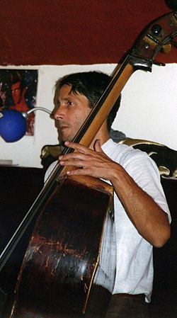 | Der Bassist Karl Sayer bei einem Auftritt im ehemaligen Wiener Jazz-Club Poorboy-Lounge | Eigenes Werk | Manfred Werner - Tsui | Datei:Karl Sayer Poorboy-Lounge1997.jpg |