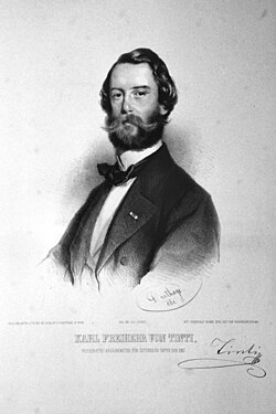 | Karl Wilhelm von Tinti, Lithographie von Adolf Dauthage, 1861 | Eigenes Foto einer Originallithographie der Albertina (Wien) | Adolf Dauthage (+1883);Foto Peter Geymayer | Datei:Karl Wilhelm Tinti Litho.jpg |