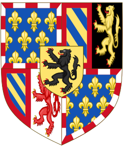 Das Wappen Karls des Kühnen ist mit dem Wappen seines Vaters Philipp III. identisch. Dieser führte das gevierte Wappen 1430 ein.