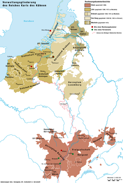 Der französische König Ludwig XI. erklärte das Herzogtum Burgund, das Mâconnais, die Auxerrois und das Charolais zu heimgefallenen Lehen. Die anderen Provinzen, insbesondere die Franche-Comté (Freigrafschaft), Luxemburg, das Herzogtum Brabant, das Artois, die Grafschaft Flandern und die Grafschaft Holland wurden vom römisch-deutschen Kaiser Maximilian I. dem Burgundischen Reichskreis zugeteilt.