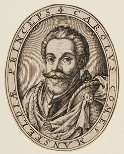 Fürst Karl (II.) von Mansfeld (* 1543 in Luxemburg; † 24. August 1595 in Komorn) diente in spanischen, französischen und kaiserlichen Diensten. Zuletzt war er oberster Befehlshaber der kaiserlichen Streitkräfte in Ungarn während des Langen Türkenkrieges.