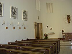 In den Jahren 1964–1966 wurde die Kirche einer Neugestaltung in Bezug auf die Erfordernisse im Zuge der Liturgiereform nach dem Zweiten Vatikanischen Konzil unterzogen. Der Hochaltar, die Seitenaltäre, die Kanzel, die Empore, die Kommunionbank und die Betstühle wurden entfernt. Ein Volksaltar wurde errichtet und der Chor der Schwestern so angeordnet, dass diese zum neuen Altar sehen können.[4] Seit diesem Totalumbau der 1960er Jahre ist die Kirche in sehr einfachen und klaren Formen gehalten. Der Altarbereich ist um zwei Stufen erhöht angeordnet. An den Seitenwänden befinden sich einige Bilder im modernen Stil. Im Kontrast zur neuzeitlichen Einrichtung wurde an der Stirnwand des Presbyteriums eine gotische Muttergottesstatue angebracht, die auf das 16. Jahrhundert datiert wird.[4] Das Klostergebäude wurde von 1971 bis 1974 generalsaniert.