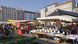 - Einkaufsstraße mit Markt bei den Wiener Einkaufsstraßen