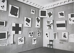 | 0,10 Exhibition : A section of Suprematist works by Kazimir Malevich exhibited for the first time | Original publication : 1915 Immediate source : feed://lfeffortposts.wordpress.com/tag/art/feed/ | Фотография Ателье Буллы Unbekannt Unknown 1 | Datei:0.10 Exhibition.jpg | |