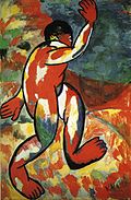 Im Primitivismus von 1910 bis etwa 1912 herrschten stark vereinfachte, flächige Formen und eine expressive Farbgebung vor. Die Bildthemen bezogen sich auf Alltagsszenen; ein Beispiel hierfür ist der Badende aus dem Jahr 1911.