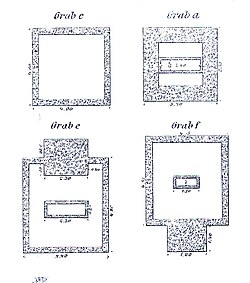 | Skizze der römischen Gräber in Fischamend von 1902 | Maximilian von Groller-Mildensee: II, 1902, (Der Römische Limes in Österreich) | unbekannt | Datei:Nekropole Aequinoctium 1902.jpg |