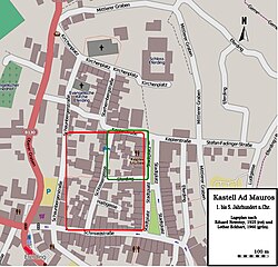 1970 wurde am Josef-Mitter-Platz eine von Südwesten nach Nordosten verlaufende, massive gemörtelte Bruchsteinmauer angefahren, möglicherweise ein Abschnitt der westlichen Umwehrung des Kastells (Lothar Eckhart).[9]