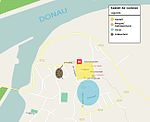 markiert heute grob das ummauerte Areal des Limeskastells. Im Norden schließt sich der Schlosspark an, wo ebenfalls römerzeitliche Keramikscherben gefunden wurden. Im Westen lag ein spätantikes Gräberfeld, am Donauufer vom Militär sowie privat betriebene Ziegeleien und der an einem Seitenarm der Donau befindende Stapelplatz für die dort produzierten Ziegel. Im Süden des Kastells erstreckte sich das Lagerdorf (vicus) bis zum heutigen Tiefenweg.
