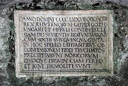 | Schild in der Maximuskapelle über die Martyrerlegende in den Katakomben des Petersfriedhofes in Salzburg | Eigenes Werk | 589holl | Datei:Petersfriedhof-Kat-Martyrer.jpg | |