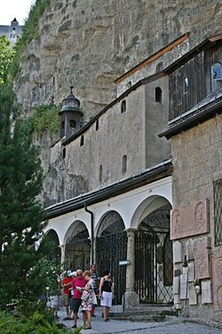 Am Rand des Salzburger Petersfriedhofs befinden sich erhöht die Katakomben, die in den Festungsberg gehauen wurden. Sie sind höchstwahrscheinlich spätantik-frühchristlichen Ursprungs und dienten trotz ihres Namens nicht als Begräbnisstätten, sondern wohl als frühchristliche Versammlungsorte.