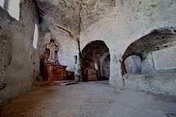Die Katakomben im Petersfriedhof in der Altstadt von Salzburg sind neben dem Friedhof des Stiftes Nonnberg die vielleicht älteste christliche Begräbnisstätte Salzburgs sowie ein aus dem Konglomerat des Mönchsberg gehauenes Höhlensystem. Die Anfänge des Petersfriedhofs sowie die Katakomben gehen angeblich auf die spätrömische Stadt Iuvavum zurück, sie stammen jedenfalls aus frühromanischer Zeit. 1860 wurden die letzten Umbauten durchgeführt. Genau genommen handelt es sich bei den gemeinhin als „Katakomben“ bekannten Höhlen um die Einsiedelei des Klosters St. Peter. Der Name „Katakomben“ kam erst im frühen 19. Jahrhundert, auf, ursprünglich hießen sie „Einsiedelei", bzw. "Eremitorien“, da hier Eremiten (Einsiedler) im kargen Fels Unterschlupf fanden. Von außen wirkt die Einsiedelei mit seinen Kapellen sehr unscheinbar, da zuallererst neben dem unteren Teil, welcher durch einen Felssturz freigelegt und anschließend zugemauert wurde, nur kleine, leicht zu übersehende, Öffnungen im Fels sichtbar sind. Der Eingang zu den Höhlen erfolgt über den Petersfriedhof durch die leicht erhöhte Kommunegruft, wo Mozarts Schwester Nannerl, sein Freund, der Komponist Michael Haydn und der Architekt und Baumeister des Salzburger Domes, Santino Solari beigesetzt sind.[1][2]