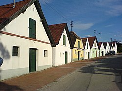 | Kellerviertel 79 (Schaukeller), ein Teil des etwa 2 Kilometer langen Kellerviertels in der burgenländischen Gemeinde Heiligenbrunn . Eine lockere Reihung von Weinkellern und Speichern aus dem 18. und 19. Jahrhundert. Ursprünglich meist niedrige Holzblockbauten mit lehmverschmierten, weißgekalkten Wänden und abgewalmten Satteldächer mit Strohdeckung. | Eigenes Werk | C.Stadler/Bwag | Datei:Heiligenbrunn - Kellerviertel 79 (Schaukeller).JPG | |