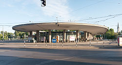 | Stationsgebäude, U-Bahn Station Kennedybrücke (Außenerscheinung) | Eigenes Werk | Thomas Ledl | Datei:Kennedybrücke Betonoval.jpg | |