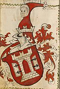 | Brasão Khuen Belasi | Eigenes Werk Lambrequins e elmo derivados de File:Wappen Hanau.svg (autor Adolf Matthias Hildebrandt) | tetraktys ( Diskussion ) 05:27, 21 July 2020 (UTC) | Datei:Brasão Khuen Belasi.jpg | |