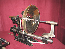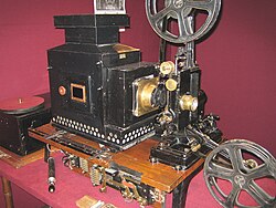 | Gaumont-Wanderprojektor aus 1899 des Carl Friedrich Lifka. | Selbst fotografiert ( Originaltext: kinOptikum gaspolshofen 2006 ) | Reztips | Datei:KinOptikum Gaumont 1899.jpg | |