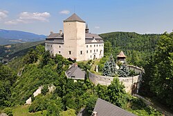 | Südansicht der Burg Kranichberg in der niederösterreichischen Marktgemeinde Kirchberg am Wechsel. Die hochmittelalterliche Burg wurde im 14. Jahrhundert errichtet. Nach einem Brand im Jahr 1745 erfolgte eine Wiederinstandsetzung. | Eigenes Werk | C.Stadler/Bwag | Datei:Kirchberg am Wechsel - Burg Kranichberg (a).JPG | |