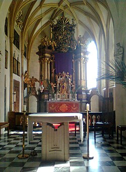| Dieses Foto zeigt das im digitalen Kulturgüterverzeichnis der Gemeinde Graz (Österreich) unter der Nummer 1465 ( commons , de ) aufgeführte Objekt. | Eigenes Werk | Andi oisn | Datei:Maria Elend Graz Straßgang3 Altarraum.jpg |