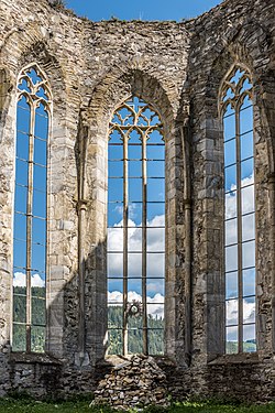 Kirchenruine Virgilienberg vom 13./14. Jahrhundert, Stadt Friesach , Bezirk Sankt Veit, Kärnten , Österreich , EU | Eigenes Werk | Johann Jaritz | Datei:Friesach Kirchenruine Virgilienberg Apsis Maßwerkfenster 04092017 0732.jpg |