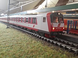 | Modell des ÖBB Steuerwagen 80-75.012-9 von Klein Modellbahn, das mit Innen-, Spitzen- und Schlußbeleuchtung ausgestattet wurde. | Eigenes Werk | ÖBB 4020.233 | Datei:Klein Modellbahn Steuerwagen 80-75.jpg | |