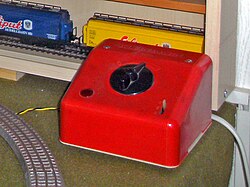 Detailaufnahme der für Kleinbahn und Klein Modellbahn typischen Anordnung des Mabucchi Gleichstrommotors in einer Elektrolokomotive 1044. | Archiv Urheber | Benutzer Monbijouwiki | Datei:Kleinbahn03wiki.jpg | |