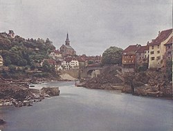 | Farbfotografie nach den Autochromverfahren aus: Der Schwarzwald in Farbenphothographien, Wagner Freiburg 1910-1911, Tafel Nr. 33: Laufenburg | Selstgefertigter Scan eines Fotos aus eigenem Bildarchiv | Autor/-in unbekannt Unknown author | Datei:Black Forest Autochrome 33 Laufenburg.jpg | |