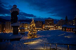 | Hauptplatz Einsiedeln with the abbey, Marienbrunnen and parts of the Christmas market (Einsiedler Weihnachtsmarkt) after dark. | Eigenes Werk | Daniel Kraft | Datei:Einsiedeln Kloster und Weihnachtsmarkt.jpg | |