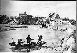 | Mainmühle des Klosters Pons Mariae in Astheim. Im Hintergrund die Hallburg. | Christa Benedum (u.a.): Astheim und seine Kartause. Würzburg 1991. | Johann Adam Klein, 1816 | Datei:Astheim1 - Kopie.JPG | |