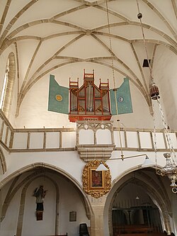 Hinter dem „Orgelerker“ (datiert 1512) steht der Nachbau einer spätgotischen Orgel; dieser wurde von Rupert Gottfried Frieberger initiiert und von den Orgelwissenschaftlern Rudi van Straten und Wim Diepenhorst (Niederlande) mitentworfen bzw. durch die niederländische Werkstätte Gebrüder Reil (Heerde, Gelderland) realisiert. Vorangegangen war ein annähernd baugleiches Studienprojekt, um für die Restaurierung der gotischen Orgel der Nicolaikirche in Utrecht Erkenntnisse zu gewinnen (→ „Van-Straten-Orgel“). Die Bemalung des Gehäuses und Gestaltung der Flügeltüren besorgte Gerhard Wünsche. Am 30. Oktober 2015 wurde die Orgel durch Harald Vogel inauguriert, wobei die Schola Gregoriana Plagensis, geleitet von Rupert G. Frieberger, mitwirkte.