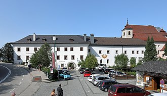 Südansicht des ehemaligen Jesuitenklosters Traunkirchen in der oberösterreichischen Gemeinde Traunkirchen . Das Kloster wurde nach einem Brand 1632 unter teilweiser Verwendung erhalten gebliebenen gotischen Teilen neu aufgebaut. 1773 erfolgte die Aufhebung des Klosters. | Eigenes Werk | C.Stadler/Bwag | Datei:Traunkirchen - Kloster.JPG | |